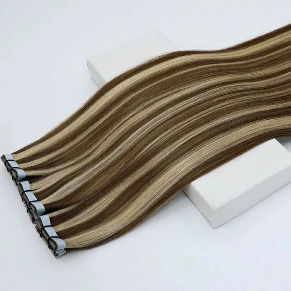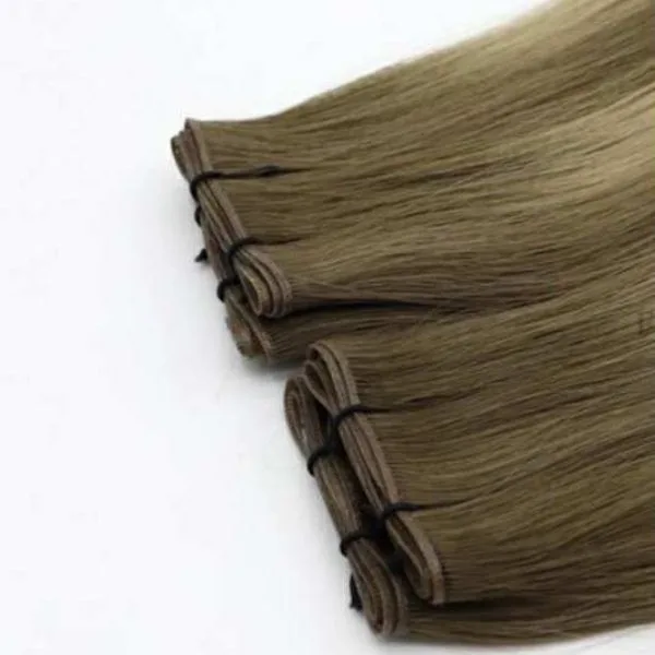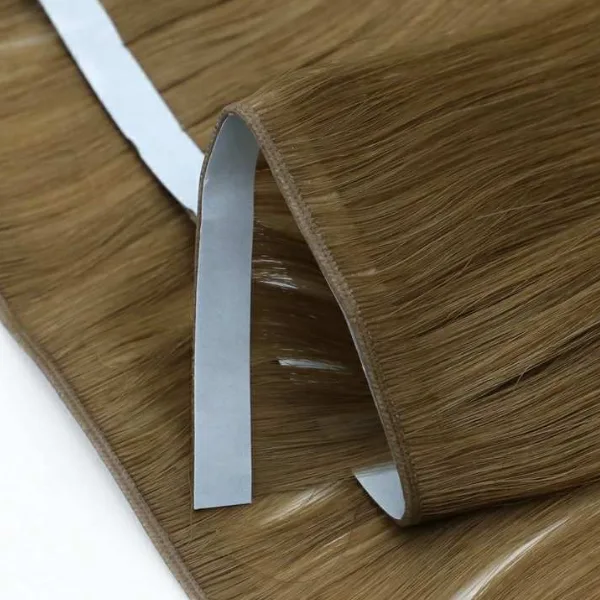 TAPE WEFTS Inovativna različica, ki združuje prednosti klasičnih trakov in hitre “tape-on” metode s pomočjo tanke samolepilne podlage. Tehnika je zasnovana za izjemno hitro in enostavno namestitev, kar je popolna rešitev za stranke, ki želijo vrhunski rezultat v krajšem času. Lasje so popolnoma ravni, mehki in sijoči, njihova “double drawn” kakovost pa zagotavlja polnost in obstojnost do dveh let.